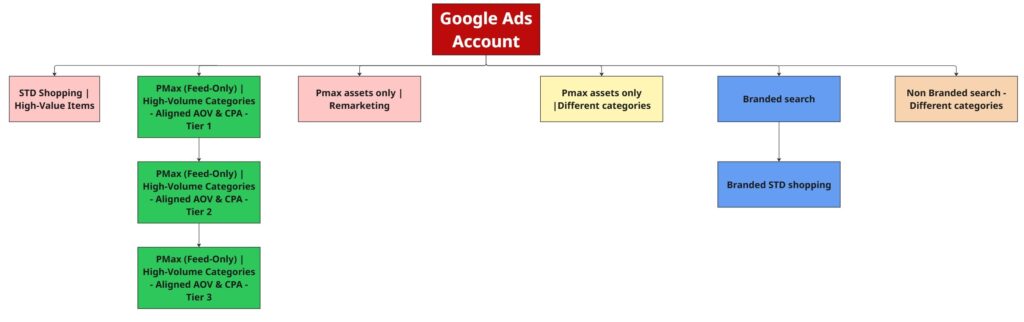 This structure delivered acceptable results at low spend levels, but the account was not built to scale.